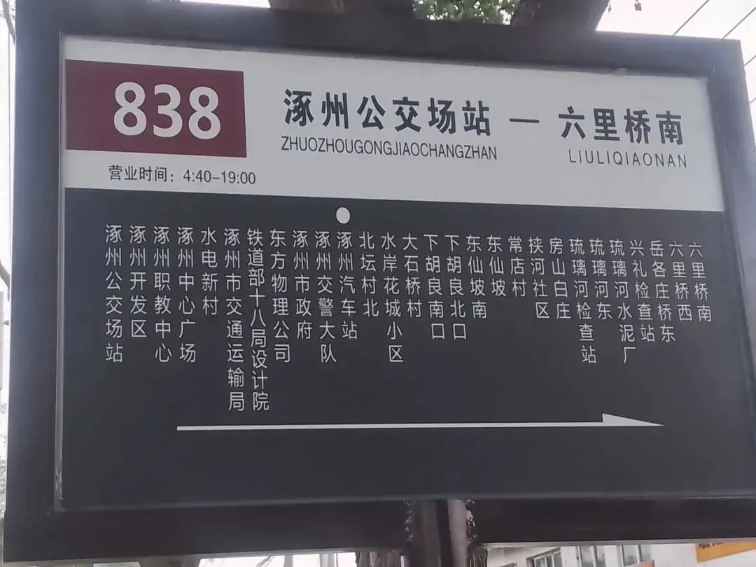 简介北京公交838路,运营于中国河北省保定市涿州市和北京市房山区、丰台区,为市区线路,于2001年9月28日开通运营,隶属于北京公交集团管辖。 北京公交838路上行...